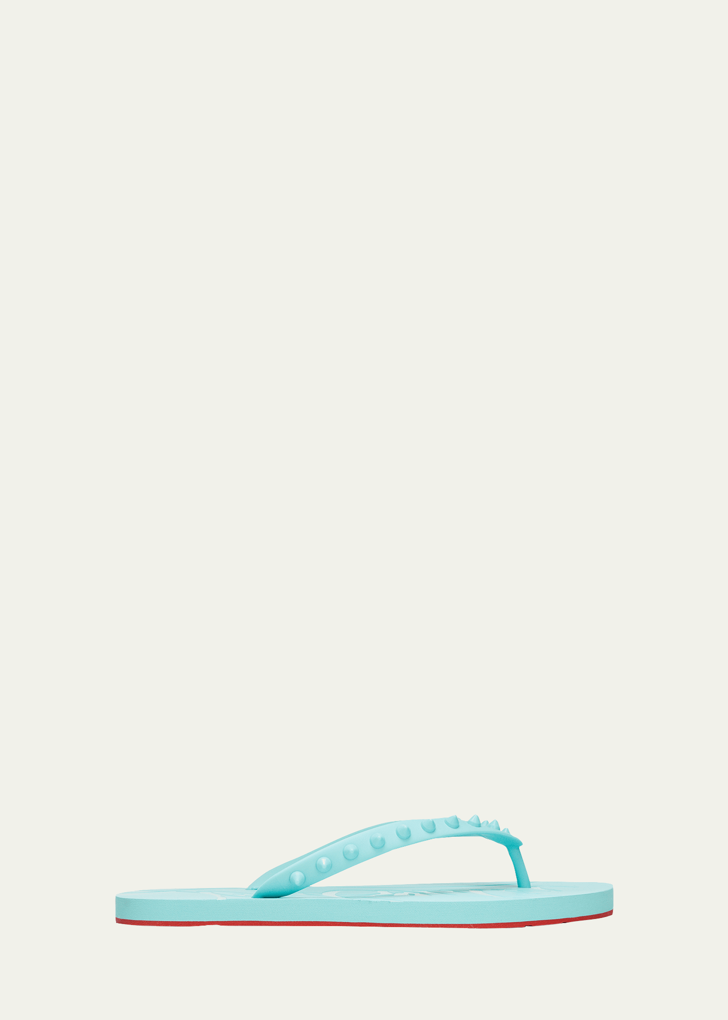 CHRISTIAN LOUBOUTIN Loubi Spike Rubber Flip Flops In Turqoise