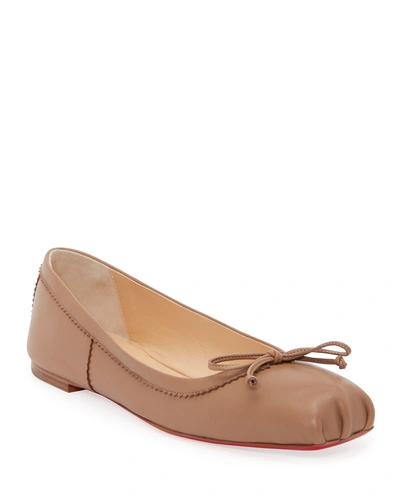 CHRISTIAN LOUBOUTIN Mamadrague Napa Bow Ballerina Flats In C626 Fennec Beige