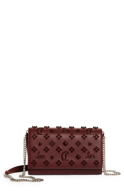 Delicate studding and spiked embellishment highlights this leather clutch. Top flap with snap closure One interior compartment Interior slip pocket Interior zip pocket 10 interior card slots Dust bag included Leather Lining: Polyester Made in Italy SIZE Removable crossbody chain, 22.75" drop 9"W x 5.5"H x 2"D ABOUT THE BRAND In 1991, French designer Christian Louboutin opened his first shoe salon in Paris, debuting stilettos with his signature red-lacquered soles. Today, the label has expanded to include coveted handbags, beauty and men's shoes, and continues its mission to create styles that inspire confidence and empowerment. Handbags - European Collection Hdba > Christian Louboutin > Saks Fifth Avenue > Barneys. Christian Louboutin. Color: Bordeaux.