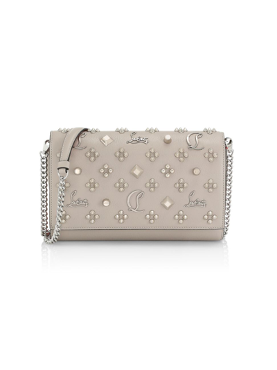 Delicate studding and spiked embellishment highlights this leather clutch. Top flap with snap closure One interior compartment Interior slip pocket Interior zip pocket 10 interior card slots Dust bag included Leather Lining: Polyester Made in Italy SIZE Removable crossbody chain, 22.75" drop 9"W x 5.5"H x 2"D ABOUT THE BRAND In 1991, French designer Christian Louboutin opened his first shoe salon in Paris, debuting stilettos with his signature red-lacquered soles. Today, the label has expanded to include coveted handbags, beauty and men's shoes, and continues its mission to create styles that inspire confidence and empowerment. Handbags - European Collection Hdba > Christian Louboutin > Saks Fifth Avenue > Barneys. Christian Louboutin. Color: Sasso.