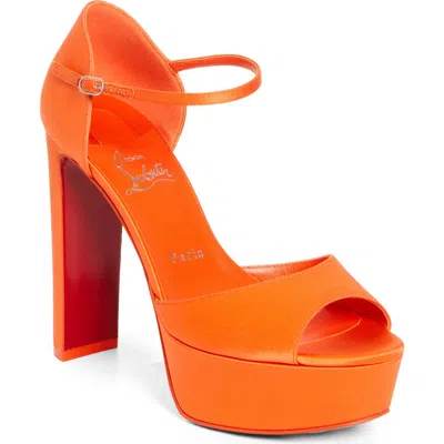 CHRISTIAN LOUBOUTIN Sandaloo Silk Satin Platform Sandal In Orange