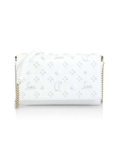 Delicate studding and spiked embellishment highlights this leather clutch. Top flap with snap closure One interior compartment Interior slip pocket Interior zip pocket 10 interior card slots Dust bag included Leather Lining: Polyester Made in Italy SIZE Removable crossbody chain, 22.75" drop 9"W x 5.5"H x 2"D ABOUT THE BRAND In 1991, French designer Christian Louboutin opened his first shoe salon in Paris, debuting stilettos with his signature red-lacquered soles. Today, the label has expanded to include coveted handbags, beauty and men's shoes, and continues its mission to create styles that inspire confidence and empowerment. Handbags - European Collection Hdba > Christian Louboutin > Saks Fifth Avenue > Barneys. Christian Louboutin. Color: Bianco Bianco.