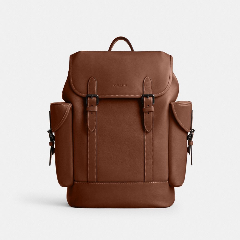 Combining effortless style and major functionality our Hitch takes you to work weekends and everywhere in between. Crafted of natural grain leather with beautiful texture and soft feel this organized backpack has space for a 15 laptop interior multifunction pockets to hold small accessories and exterior side pockets for easy access to essentials. It's a comfortable lightweight style with leather-covered magnetic snap closures durable microfiber lining and spacer mesh backing. Coach Hitch Backpack - Redwood