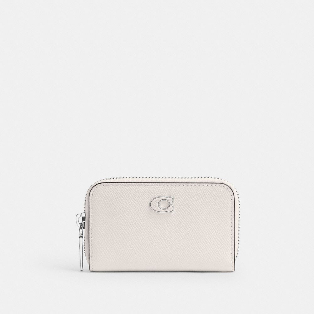 A modern minimalist design this convenient small card case is crafted of durable scratch-resistant crossgrain leather. Finished with our Signature hardware the slim style unzips to reveal three card slots and two open pockets with space for cash coins receipts and wireless earbuds or small accessories. Coach Small Zip Around Card Case - Chalk
