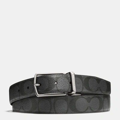 Signature coated canvas and refined calf leather Cut-to-size Reversible 30mm (W) Style No. CQ016 COACH Harness Buckle Cut-To-Size Reversible Belt, 30 Mm - Men's - Grey COACH Harness Buckle Cut-To-Size Reversible Belt, 30 Mm - Men's - Grey