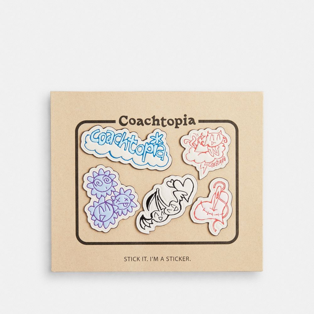 Make it more Coachtopia: this sticker set recreates a suite of fun designs from Coachtopia community member Kelly Ficarra in leather repurposed from Coach cutting room scraps that might otherwise have been sent to landfill. It's been crafted according to our Made Circular principles meaning it finds new uses for waste materials and is designed to be reused and remade over multiple lives with defined pathways for remaking and recycling. (Learn more about Made Circular on our about pages.) Coachtopia Sticker Set: Comic Book Print - Cloud Multi