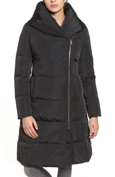 COLE HAAN SIGNATURE Cole Haan Asymmetrical Taffeta Zip Down Coat In Black