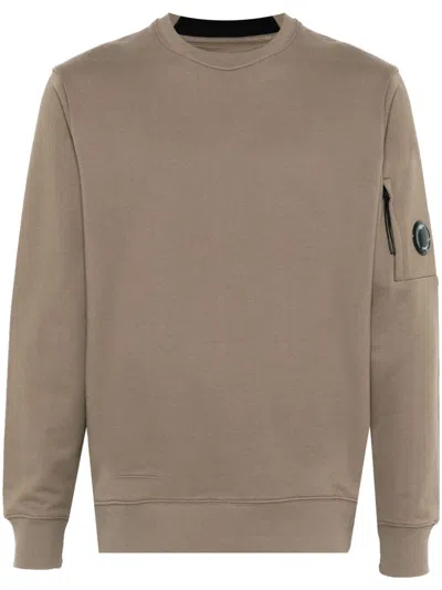C.P. COMPANY Light Fleece Crewneck Sweatshirt In Khaki Fabric