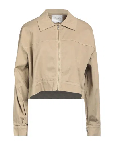 plain weave, no appliqués, solid color, classic neckline, single-breasted , long sleeves, unlined, zipper closure, no pockets, stretch, generic outerwear , Color: Sand , Size: XS