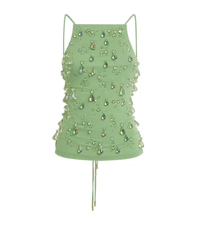 Cult Gaia Lyle Top in Sage. - size XL (also in L, M, S, XS, XXS) Cult Gaia Lyle Top in Sage. - size XL (also in L, M, S, XS, XXS) Self: 100% viscose Bead Trim: 100% acrylic. Dry clean only. Open back with dial self-tie closure. Midweight jersey fabric with bead embellishment throughout. Item not sold as a set. CULG-WS232. TP3961JY1952. Founded in 2012 by designer Jasmin Larian, Cult Gaia is a brand that takes art just as serious as fashion: the timeless collection's pieces are crafted as stunning heirloom items made to live in one's wardrobe forever. As an artistic label that designs for the moving eye, Cult Gaia aims to create an effortless visual feast through its intricately designed accessories, such as handbags, hats and jewelry.