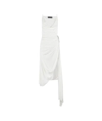 DAVID KOMA Crystal Claw Embr Detail Asymmetric Gown In White Silver