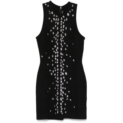 black concealed rear hook and zip fastening dart detailing round neck sleeveless. Colour. : Black. Composition. : Polyamide: 33.0%, Viscose: 62.0%, Glass: 100.0%, Elastane: 5.0%. Country Of Manufacture. : Bangladesh. Dimensions. : hips: 84.0 centimetres, length: 80.0 centimetres, waist: 68.0 centimetres. MPN. : RE25DK42DBKSI. Size Family. : UK. .