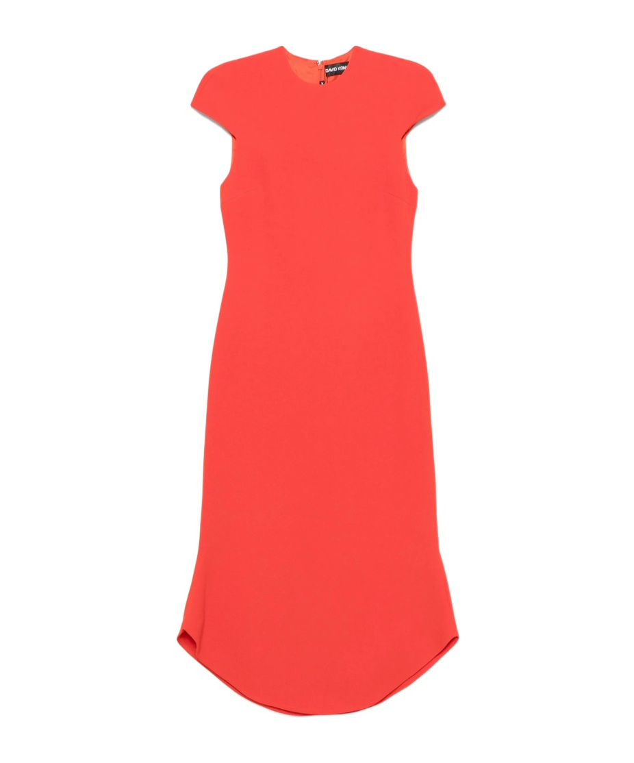 sunset orange concealed rear hook and zip fastening round neck cap sleeves curved hem. Colour. : Orange. Composition. : Lining Composition Polyester: 32.0%, Outer Composition Acetate: 47.0%, Lining Composition Acetate: 68.0%, Outer Composition Viscose: 50.0%, Outer Composition Elastane: 3.0%. Country Of Manufacture. : United Kingdom. MPN. : RE25DK37DAORANG. Size Family. : UK. .