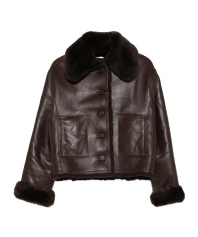 brown leather faux fur collar button fastening patch pockets long sleeves . Colour. : Brown. Composition. : Lambskin: 100.0%. Country Of Manufacture. : Turkey. MPN. : PF25DK90JBROWN. .