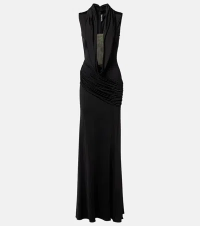 DAVID KOMA Plunge-neck Sleeveless Maxi Dress In Black