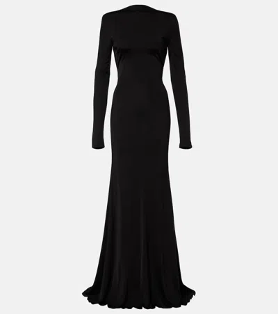 DAVID KOMA Womens Black Open-back Gathered Woven Gown