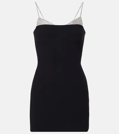 DAVID KOMA Womens Black Silver Crystal Shoulder-straps Stretch-woven Mini Dress