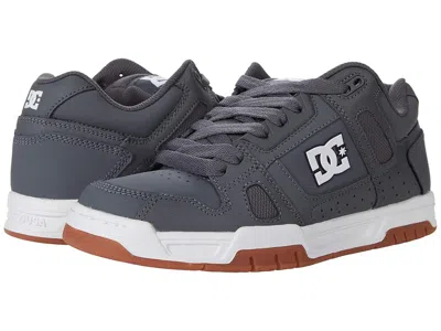 DC Stag - Men's Skate Shoes : Grey/Gum : The Stag pays homage to DC's game-changing shoes of the early 2000s with oversized puff and technical design. The durable cupsole and dynamic upper construction of the Stag put it in a class of its own. ; Casual sneakers with action nubuck and leather uppers. ; Textile lining and padded insole. ; Injected TPR logo. ; Molded TPU eyestay. ; Mesh collar and underlays. ; Medial perforations for added breathability. ; Foam padded tongue and collar for all-day comfort. ; Performance wrapped cupsole construction for added durability. ; DC's trademarked Pill pattern tread that optimizes traction and sole flex. ; Rubber outsole. ; Imported. | DC Stag Men's Skate Shoes Grey/Gum : 9.5 D - Medium, Leather/Suede