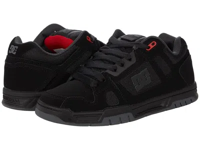 DC Stag - Men's Skate Shoes : Black/Grey/Red 1 : The Stag pays homage to DC's game-changing shoes of the early 2000s with oversized puff and technical design. The durable cupsole and dynamic upper construction of the Stag put it in a class of its own. ; Casual sneakers with action nubuck and leather uppers. ; Textile lining and padded insole. ; Injected TPR logo. ; Molded TPU eyestay. ; Mesh collar and underlays. ; Medial perforations for added breathability. ; Foam padded tongue and collar for all-day comfort. ; Performance wrapped cupsole construction for added durability. ; DC's trademarked Pill pattern tread that optimizes traction and sole flex. ; Rubber outsole. ; Imported. | DC Stag Men's Skate Shoes Black/Grey/Red 1 : 11 D - Medium, Leather/Suede