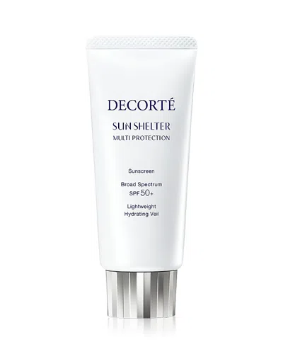 What It Is:Experience the perfect fusion of sun protection and advanced skin care with New Decorte Sun Shelter.Skin Type:For all skin types.Skin Concern:Sun protection. Hydration.What It Does:Designed to help nourish, hydrate and shield your skin, this multitasking invisible veil delivers Spf 50+ Broad Spectrum protection for radiant, healthy-looking skin. Hypoallergenic. Dermatologically tested.Key Ingredients:- Malva (mallow) extract helps protect against external stress and increases skin's resistance to Uv rays and air pollutants.- Rosemary extract is rich in antioxidants, helps balance the skin and provides moisture.- Aloe barbadensis leaf extract energizes cell function and helps firm and improve radiance.How To Use It:Use as the final step in your morning skincare routine or before makeup. Apply generously and evenly before sun exposure. Apply liberally 15 minutes before sun exposure. Reapply at least every 2 hours.