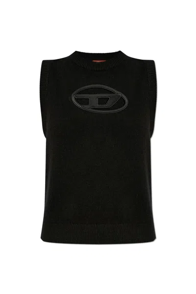 DIESEL Slim-fit Wool And Cashmere Vest With Cut-out Logo In Black