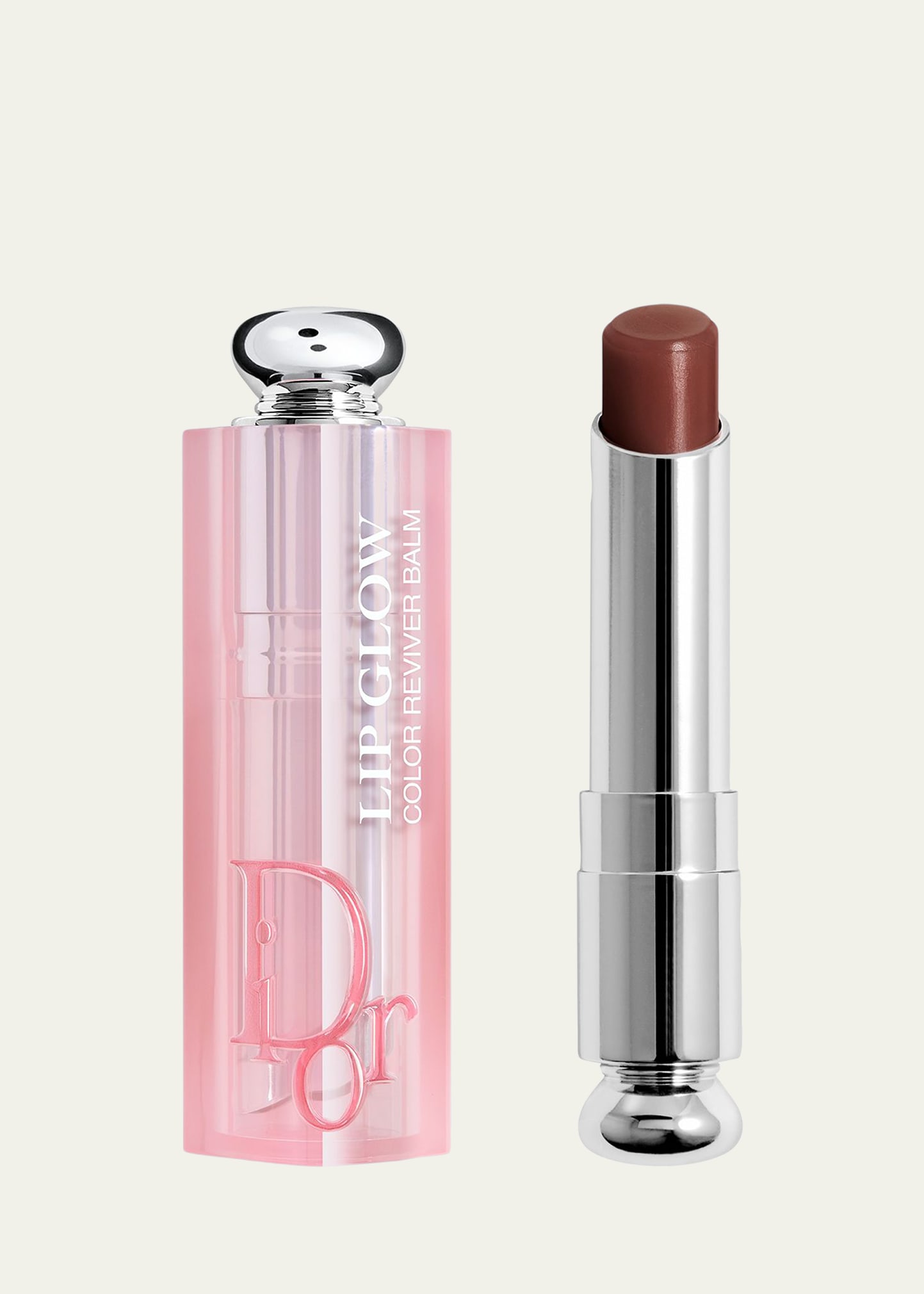 Dior Addict Lip Glow Balm Natural glow custom color reviving lip balm - 24h hydration - 97% natural-origin ingredients. The "Color Reviver" technology in Dior Addict Lip Glow lip balm reacts with the moisture level of the lips to create a custom color and a subtle shine. The lip balm is housed in a case adorned with the Dior "logomania" design and remains translucent in echo to the subtle makeup finish of Dior Addict Lip Glow. What It Does Thanks to its color reviver...