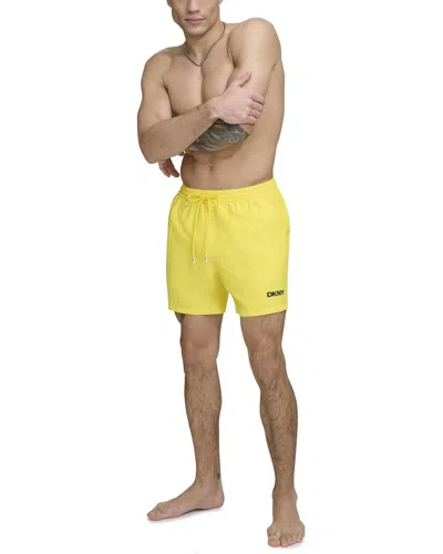 DKNY Modern Euro Core Solid Swim Trunk In Yellow