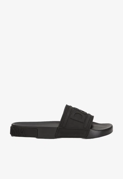 DOLCE & GABBANA 20mm Saint Barth Rubber Slides In Black