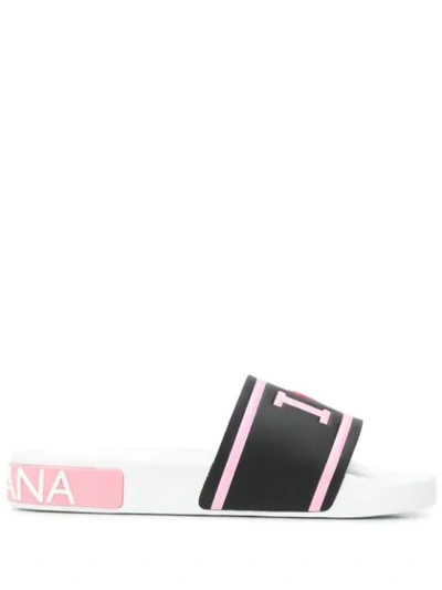 DOLCE & GABBANA Asymmetric Logo Slides In Black,pink,red