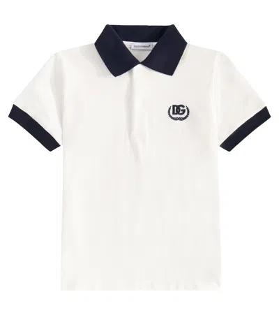 DOLCE & GABBANA Kids' Embroidered Logo Cotton Pique Polo Shirt 4-12 Years In White