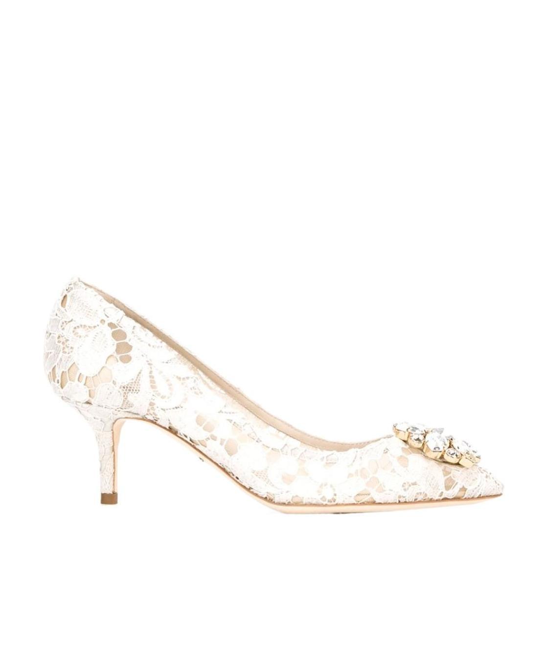 Opt for vintage glamour and these beautiful Dolce & Gabbana pumps. They're adorned with intricate floral lace and feature delicate crystal embellishment to the toe. Indulge and impress in these stunning shoes. Upper: fabric Pointed toe Leather insole and sole Colour: ivory Made in Italy True to size Slightly narrow European sizes 6,5cm-2.5" heel True to size Slightly narrow European sizes 6,5cm-2.5" heel