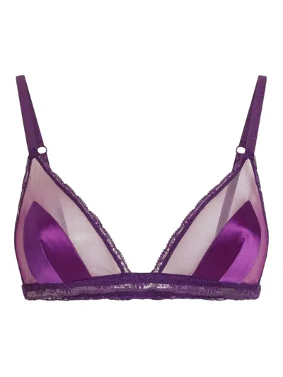 DOLCE & GABBANA Lace-detailed Satin Bra In Purple