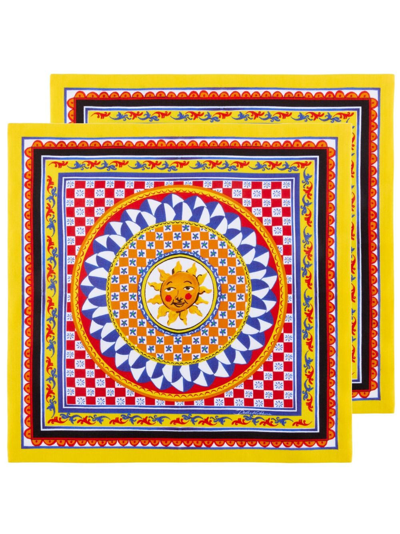 DOLCE & GABBANA Set Of 2 Linen Napkins In Yellow