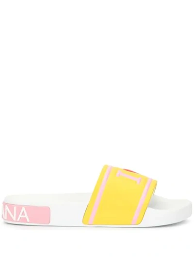 DOLCE & GABBANA Slides With High-frequency Detailing In Yellow,pink,red