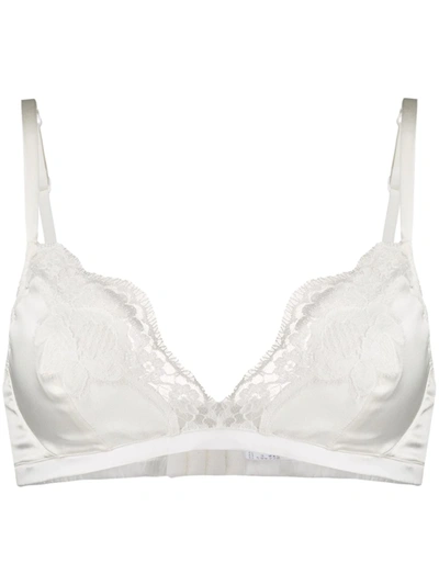 DOLCE & GABBANA Soft-cup Satin Bra With Lace Detailing In Bianco Naturale