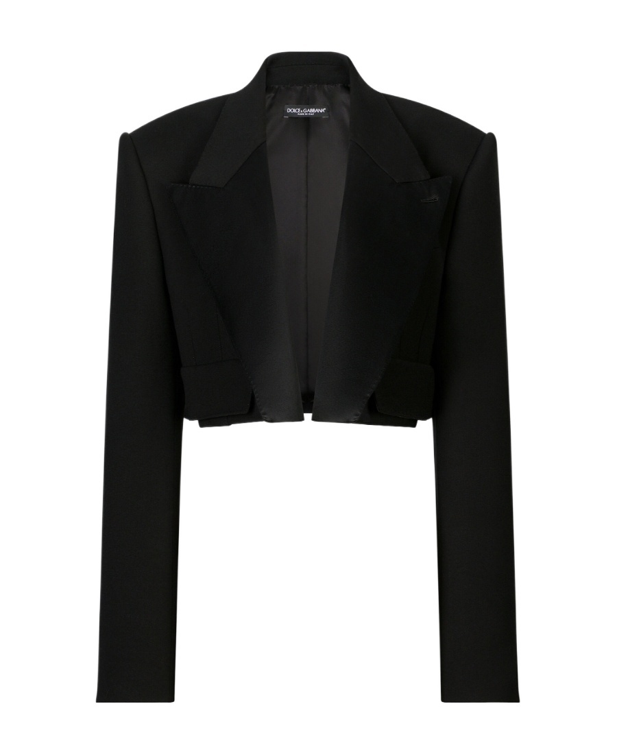 Update your tailored edit with Dolce & Gabbana's modern approach in this cropped tuxedo jacket. Expertly crafted in Italy from a wool blend, the elegant style is finished with satin lapels and buttoned cuffs.