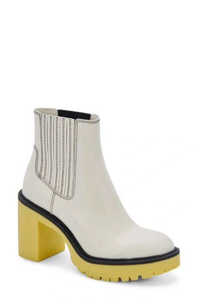 DOLCE VITA Caster H2o Waterproof Block Heel Bootie In White/green Leather