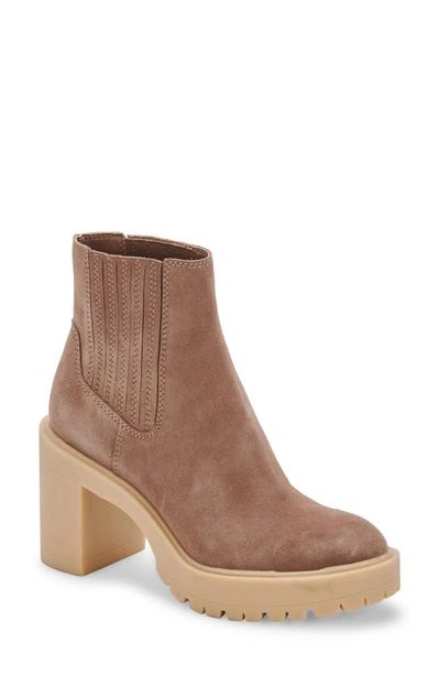 DOLCE VITA Caster H2o Waterproof Lug Sole Platform Bootie In Mushroom Suede H2o