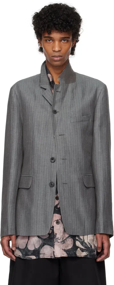 DRIES VAN NOTEN Gray Notched Lapel Blazer In 506 Raf