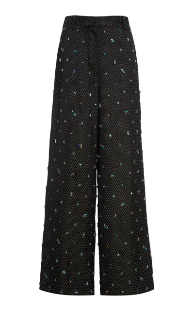 DRIES VAN NOTEN Penn Embroidered Jacquard Wide-leg Pants In Black