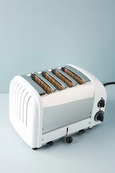 Commercial quality that will last a lifetime - hand built in UK with an insulated stainless-steel body, variable controls and automatic turnoff. Extra wide 28mm slots accommodate a Sandwich Cage, it's award winning ProHeat elements, a patented design which increases toasting efficiency & element longevity. Every toaster incorporates our trademark mechanical timer, an ejector lever, has a removable crumb tray and an adjustable rear foot. Defrost setting for frozen bread and the option to toast buns and bagels. The selector control allows you to heat only the slots that you need to use. Dualit is a UK brand that makes high quality kitchen electrics including the hand assembled classic toasters that come in a variety of colors. Insulated steel body Wipe clean Imported Please note that all sales are final. 4-Slice NewGen Toaster by Dualit in White at Anthropologie