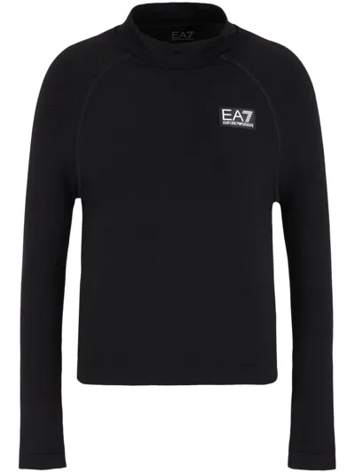 black wool blend stretch-design logo patch to the front logo patch to the rear mock neck long sleeves straight hem