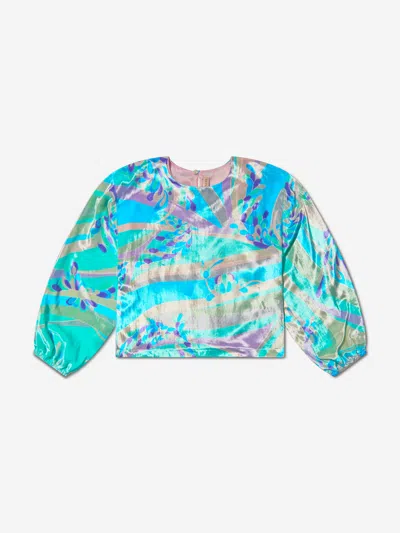 PUCCI Kids' Girls Velvet Patterned Blouse 4 Yrs Blue