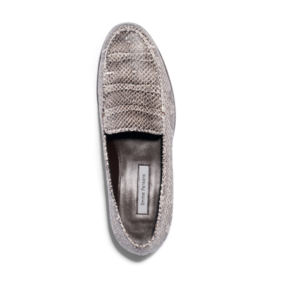 Emme Parsons "Danielle" smooth or snake-embossed leather easy loafers 0.25 in / 10 mm flat heel Round moc toe Slip-on style Leather outsole Lining: Leather Made in Italy