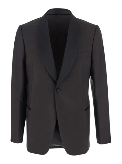 EMPORIO ARMANI Brown Single-breasted Jacket With Shawl Revers In Wool Blend Man