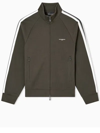 EMPORIO ARMANI Full Zip Sweatshirt With Contrasting Stripes In Gray