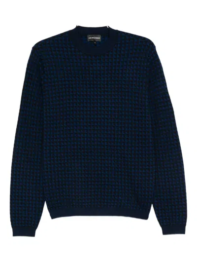 EMPORIO ARMANI Geometric Pattern Crewneck Wool Jumper In Blue
