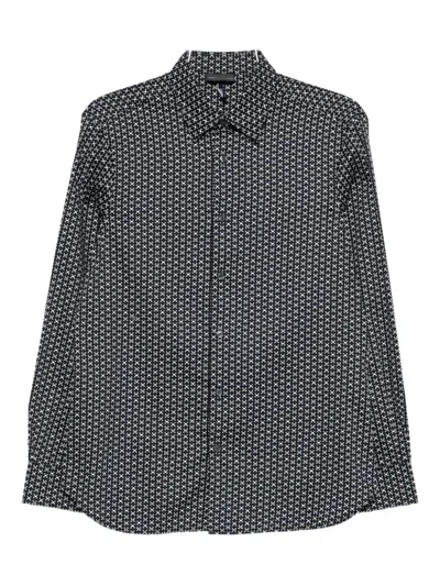 EMPORIO ARMANI Geometric Print Cotton Shirt With Button-down Collar In Blue