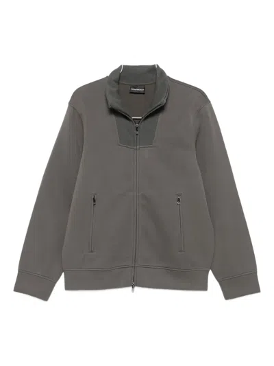 EMPORIO ARMANI High Collar Zipped Knit Sweatshirt With Pockets In Gray