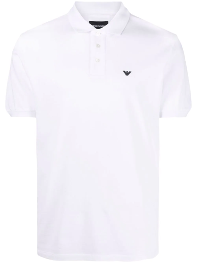White cotton logo-embroidered polo shirt from EMPORIO ARMANI featuring embroidered logo at the chest, classic collar, front button fastening and short sleeves.